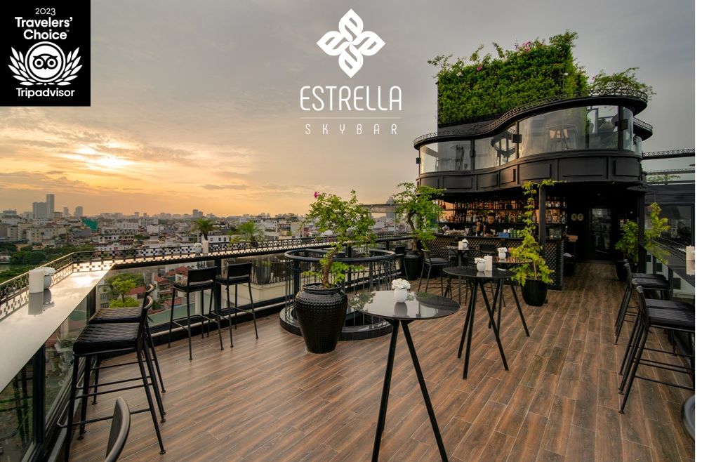 Estrella Sky Bar with contemporary mixology art and a spectacular panoramic view over Hoan Kiem Lake